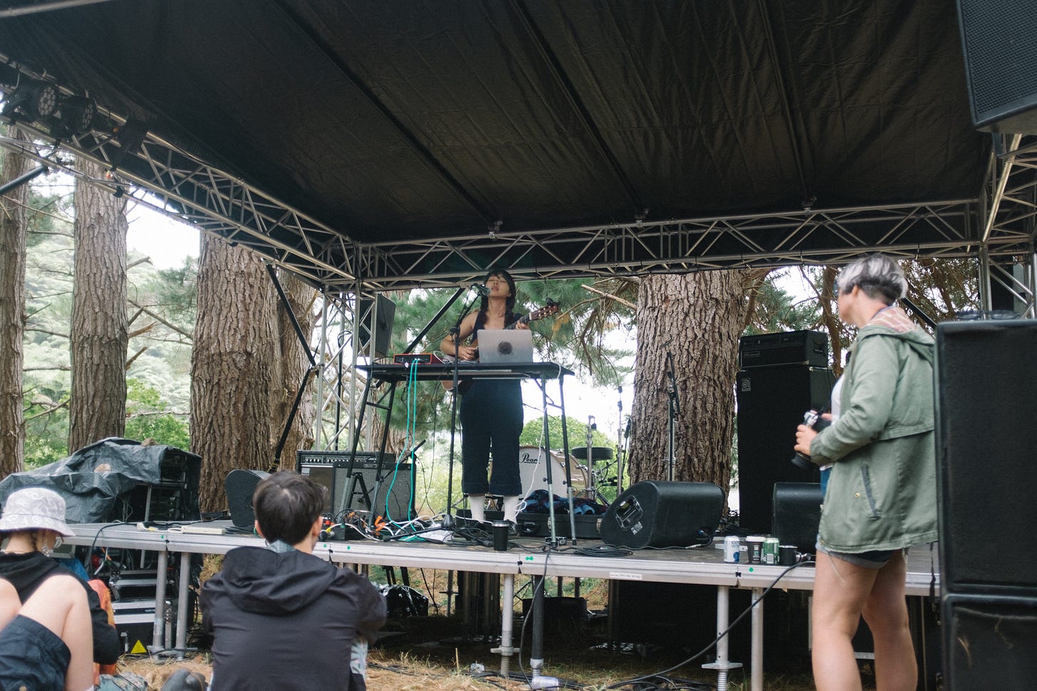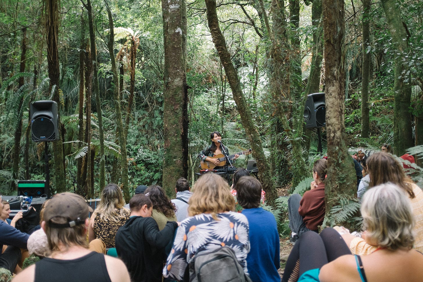 Masih ingat panggung pertamaku di Wellington? Alhamdulillah. Setelahnya aku mendapat undangan untuk manggung di beberapa festival di sini! Salah satu highlight dari panggung hara di musim panas lalu adalah undangan manggung di Camp A Low Hum. Sebagai orang yang tidak terlalu suka datang ke festival musik, aku bisa bilang kalau ini festival musik terbaik yang pernah aku datangi sepanjang hidupku! Tentunya terbaik untukku, yang tidak terlalu suka festival itu haha. Acara ini tanpa sponsor utama (apalagi sponsor rokok atau perusahaan oil & gas~), kurasi musik yang jenius, tempat yang spesial (di tengah hutan, boleh buka tenda, sarapan di dapur komunal!), panggung yang beragam dan menawarkan pengalaman musik dan ruang yang beragam pula, family-friendly, millennial-friendly (jompo muda dan lower backpainnya bisa tetap nyaman nonton show punk/hardcore sambil duduk di kursi kecil haha), bahkan ada festival di antara dua wiken festivalnya khusus untuk musisi berkolaborasi/semacam residensi bikin rilisan LP DIY yang covernya digambar sendiri, panggung open-mic (namanya Renegade) yang kadang lebih keren dari panggung officialnya, piano di depan laguna, dan obrolan-obrolan santai dengan kenalan-kenalan baru sambil nunggu antrean mandi pagi. Pengalaman manggung dan jadi penonton Camp A Low Hum selama dua akhir pekan itu benar-benar mengubah cara pandangku tentang musik dan pertunjukkan, terutama tentang apa yang aku benar-benar cari dari sebuah peristiwa musik. Konser-konser musisi idola yang aku tonton setelah Camp bahkan tidak ada yang se-berkesan Camp (padahal aku berkesempatan nonton Ben Howard, Explosions in the Sky, Arooj Aftab :’). Di sisi lain, Camp sangat menginspirasiku untuk menciptakan pengalaman musik yang lebih baik lagi! Jika ada tur yang aku rencanakan di masa depan aku bisa pastikan akan sangat terpengaruh dan terinformasikan oleh pengalamanku di Camp. Ah, jadi kangen Camp. Entah kapan bisa mengalaminya lagi (Camp terakhir sebelum awal 2024 itu 2014! Bersyukur banget bisa berjodoh dengannya di awal tahun ini). Terima kasih banyak hidup sudah memberikanku hadiah pengalaman ini di tahun ini ♥️