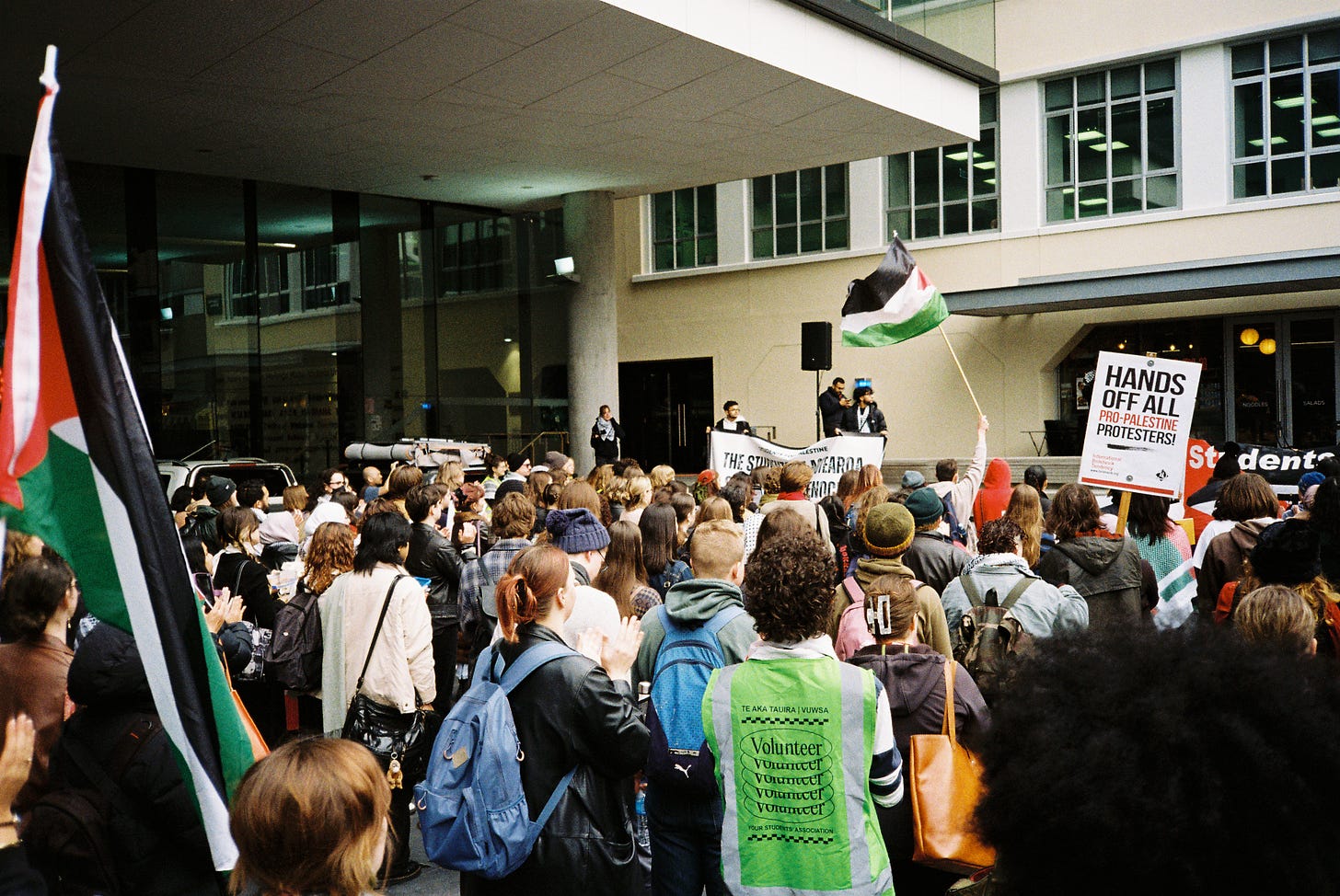 Aksi untuk Palestina di kampus. Victoria University of Wellington, May 2024.